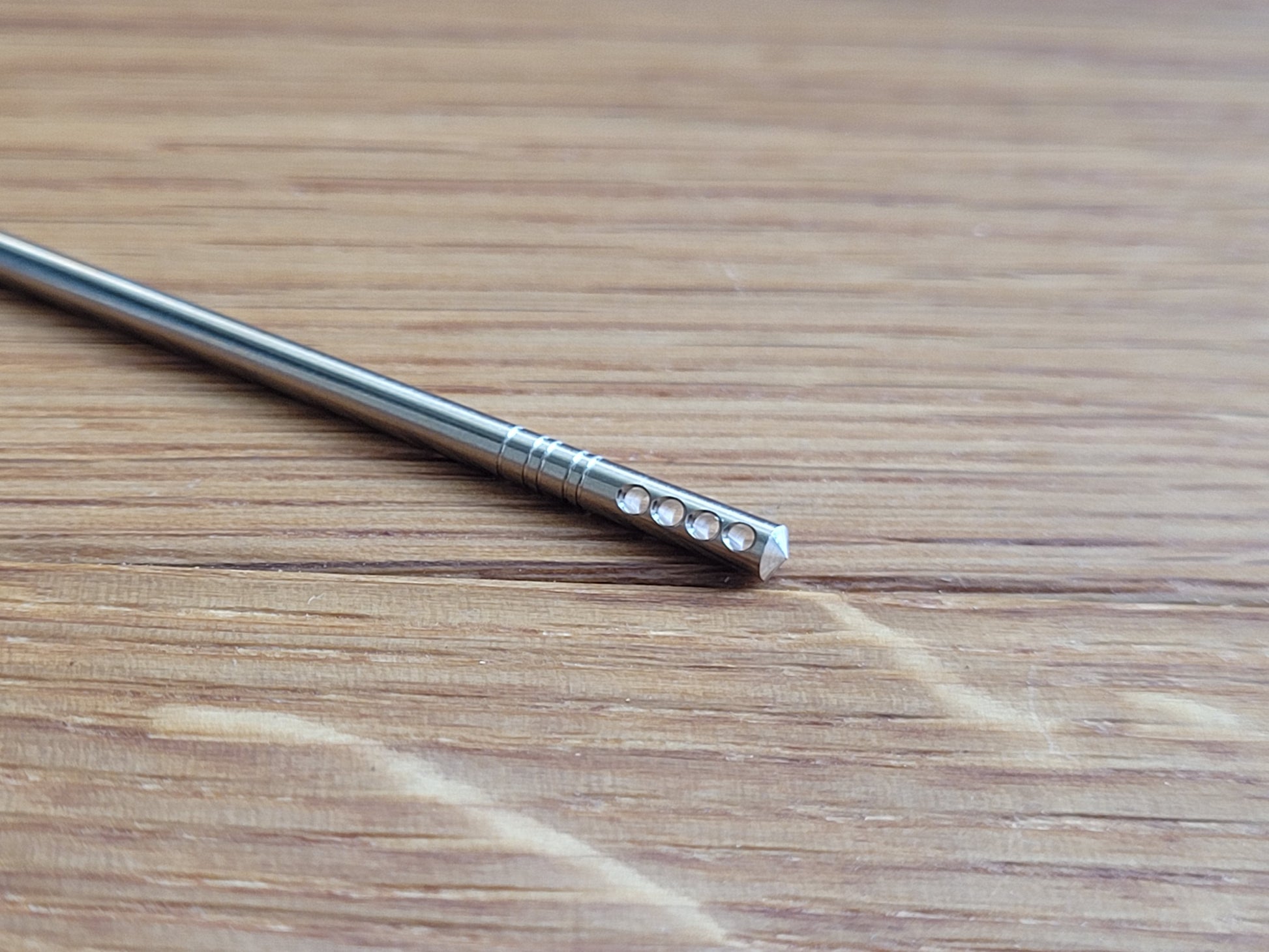 - 4 cross holes; total length 72 mm; shaft diameter 2.4 mm; tip diameter 1.95 mm